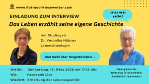 Genau darüber spreche ich am Donnerstag, 19.3. um 17:15 mit Rotraud Kiesewetter in unserem Facebook-Live Interview! Wir zeigen dir, wie du aus einem „Ich funktioniere (nur noch)“ wieder ein echtes, lebendiges Leben gestaltest und du aus dem ewigen Grübeln zurück in eine echte Tatkraft kommst.